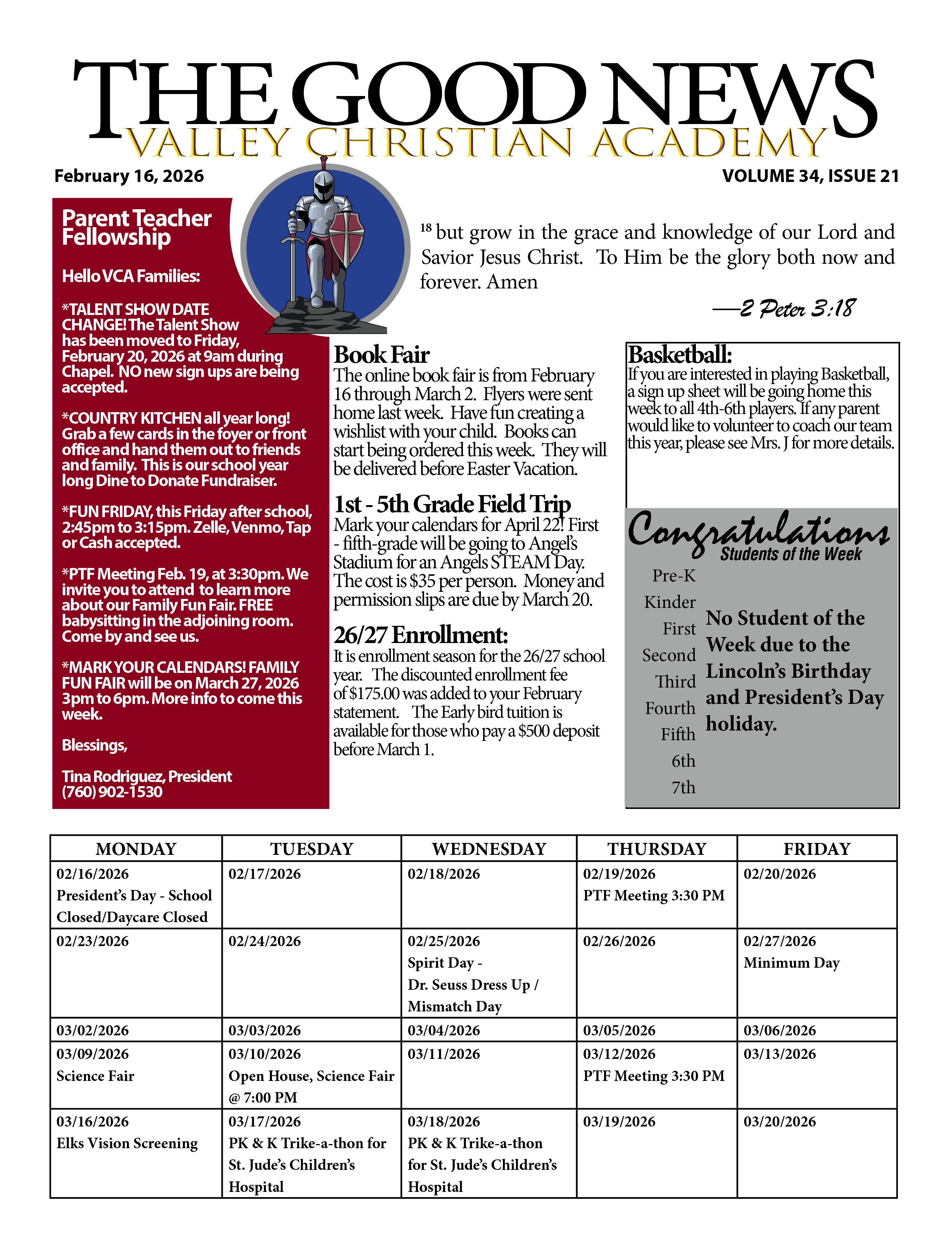Newsletter! Good News for Monday, February 16, 2026